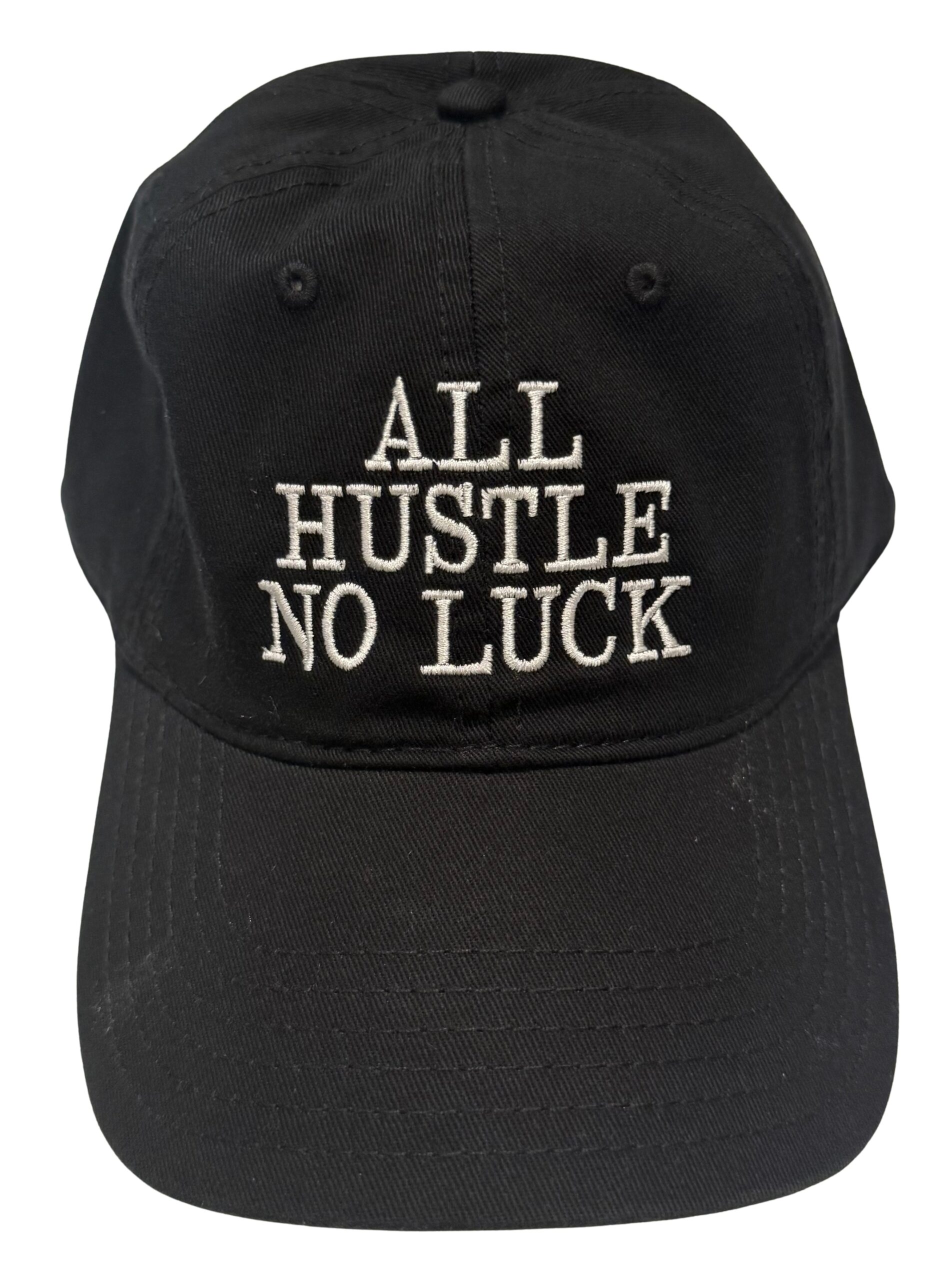 ✔ Premium Embroidery – “All Hustle No Luck” stitched with clean, bold detail.