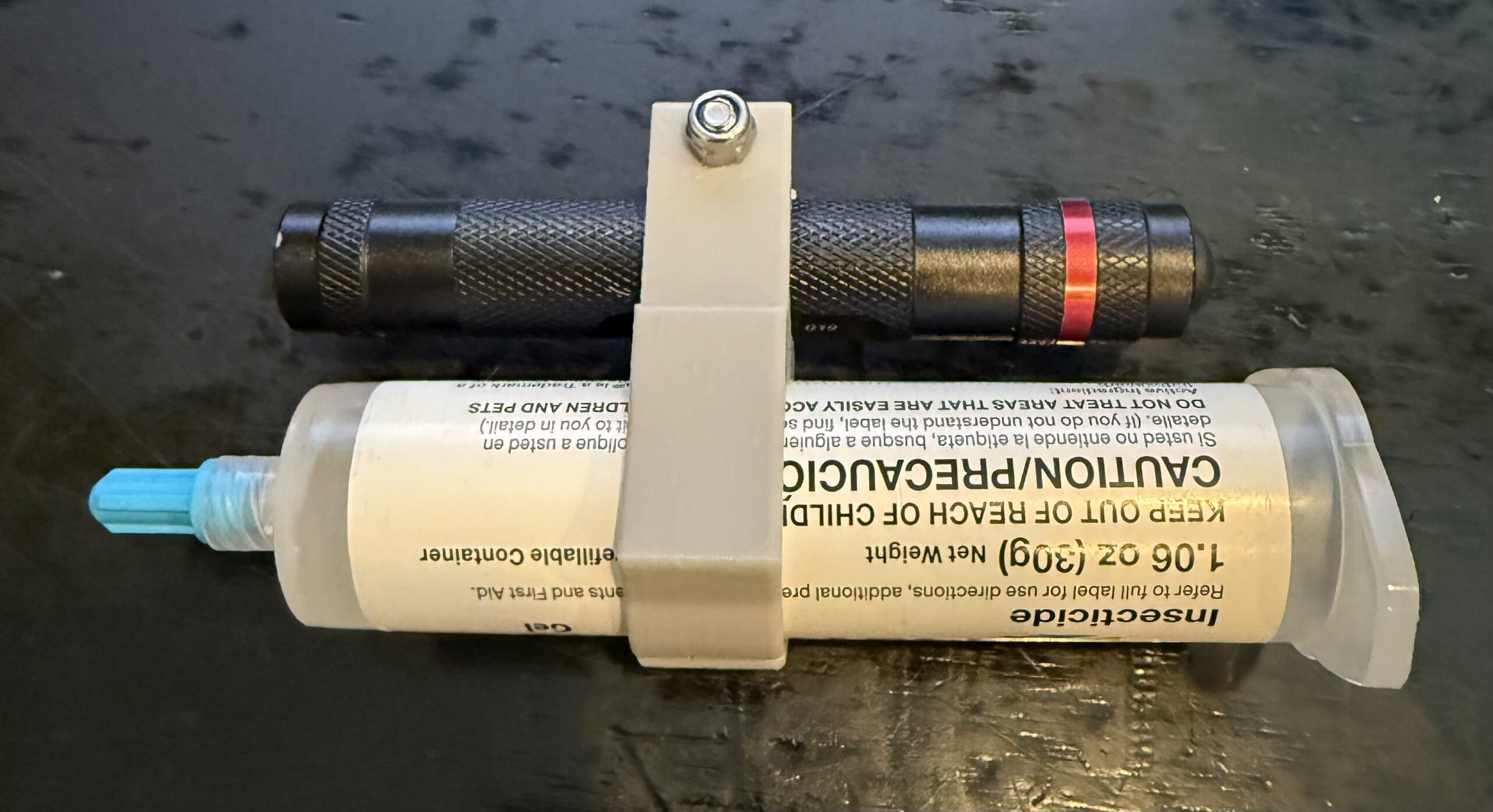 Note: No flashlight, pesticide, bait or other items are included. Only the 3D printed flashlight mount and included hardware are being sold.