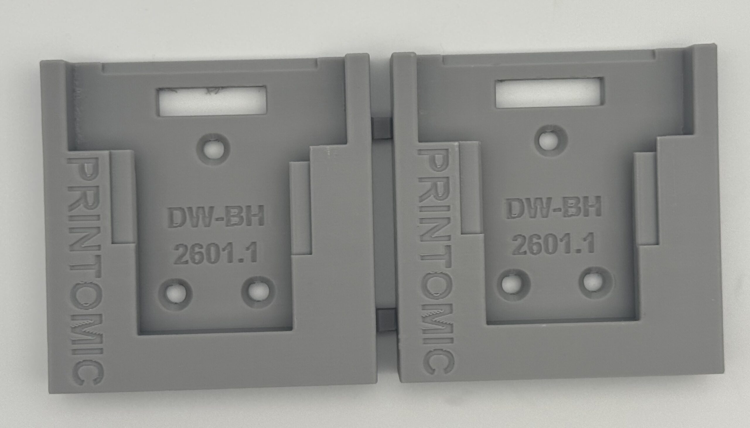 The Printomic™ brand Twin Latching Battery Holder for DeWalt® 20V batteries provides a dedicated, secure storage location for batteries. Batteries slide into the holder and lock into place with a positive latch, keeping them secure until you’re ready to use them. Holds 2 batteries.