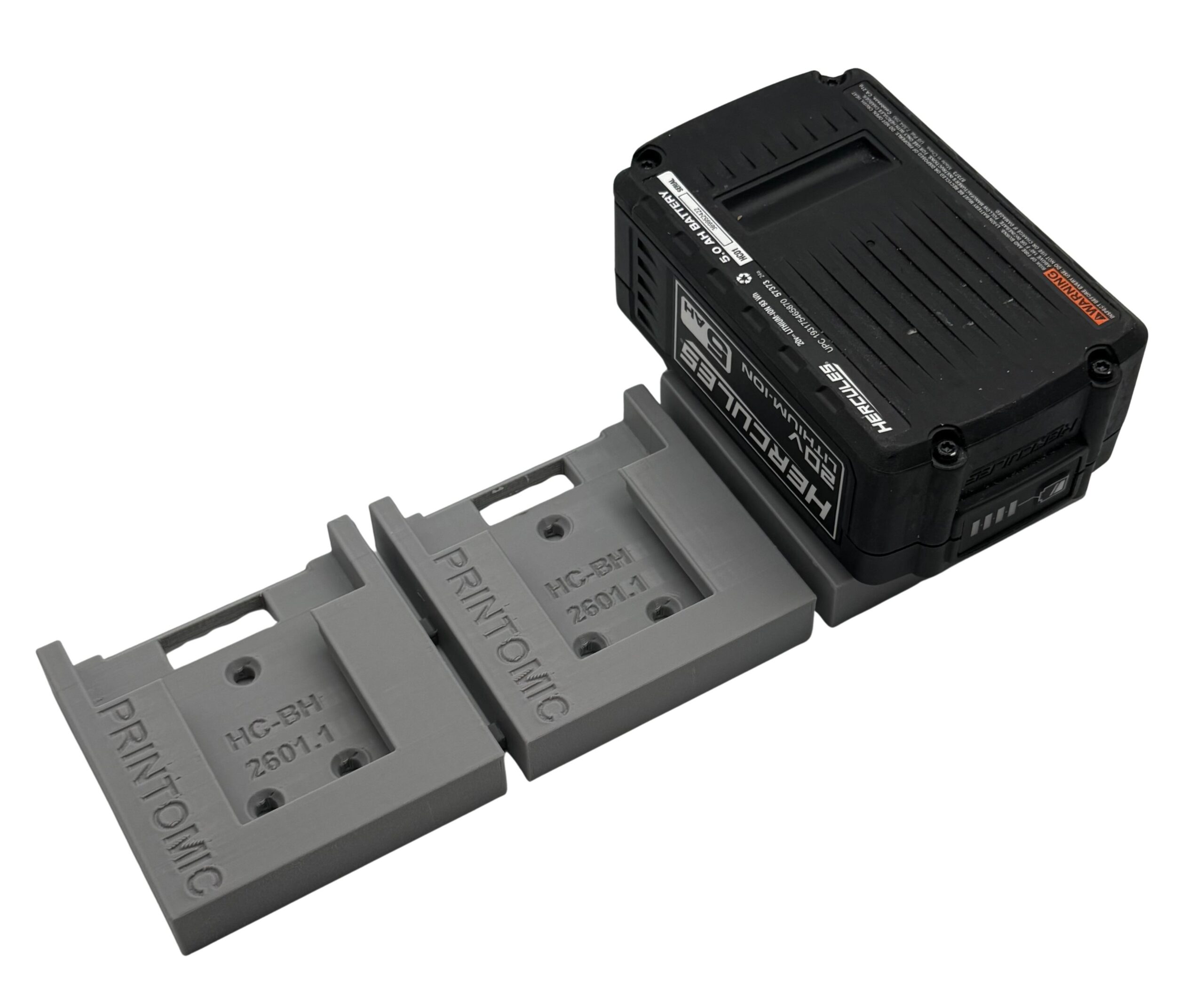 The Printomic™ brand Latching Triple Battery Holder for Hercules® 20V or 12v battery provides a dedicated, secure storage location for three batteries. Batteries slide into the holder and lock into place with a positive latch, keeping them secure until you’re ready to use them.
